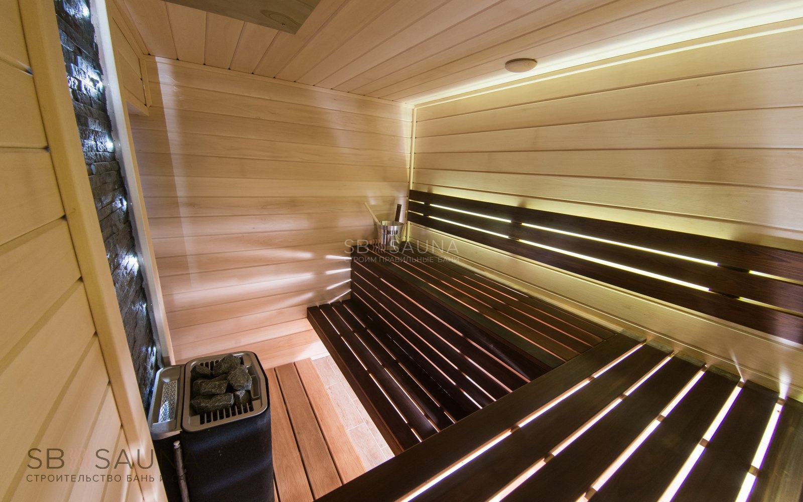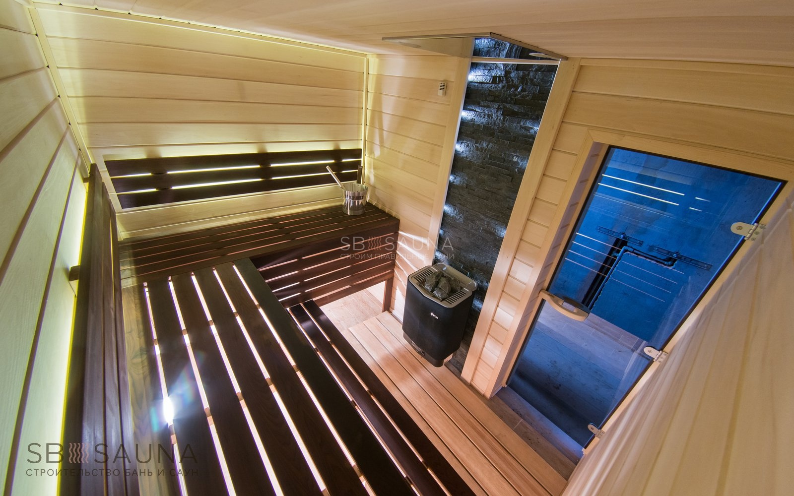 .Обратите внимание на сочетание темного и светлого дерева и печеного угла из природного камня талькохлорита.