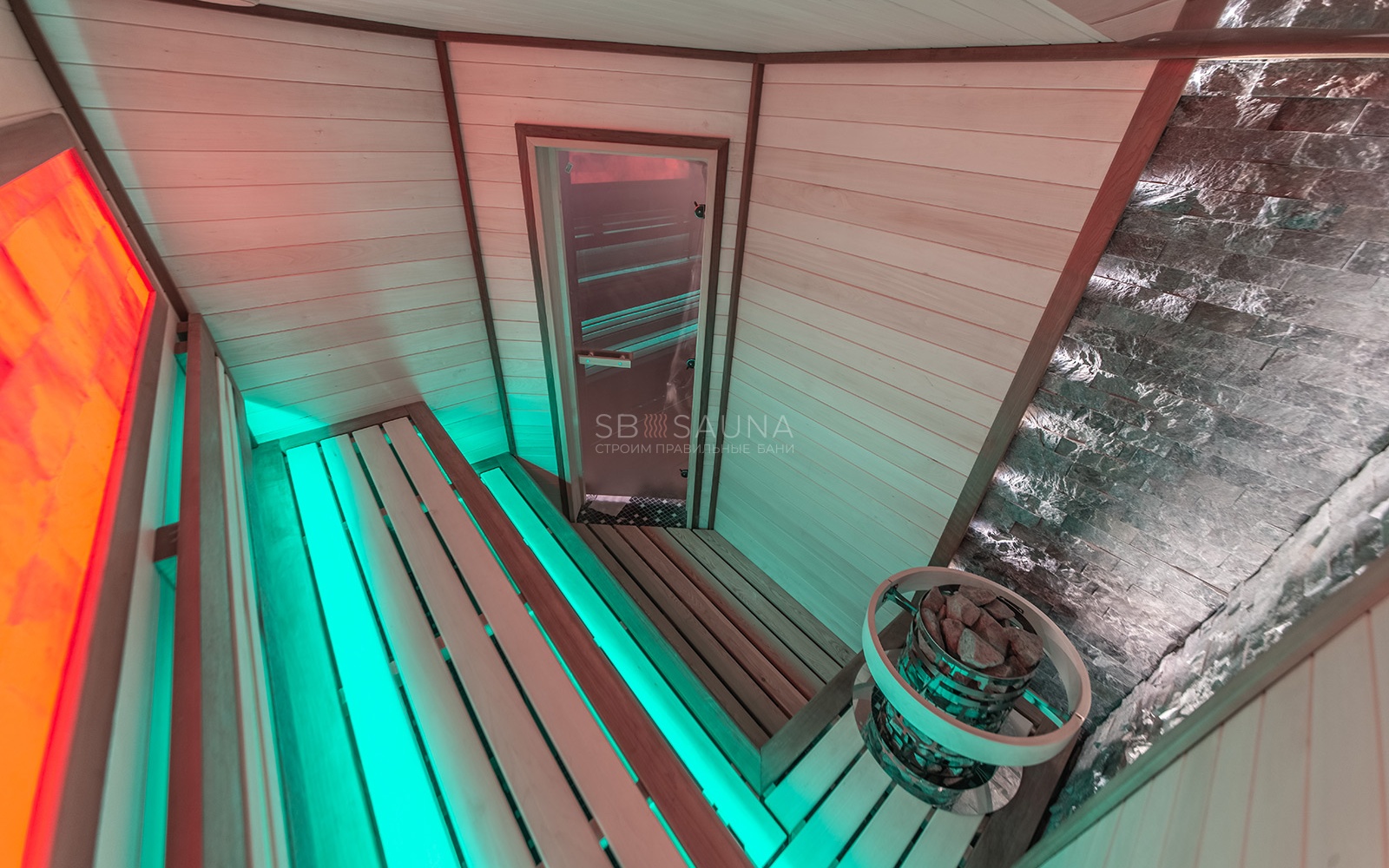 Данная сауна - проект, которым мы действительно можем гордиться, так как смогли реализовать при строительстве парной то, что хотел заказчик с тонким чувством вкуса.