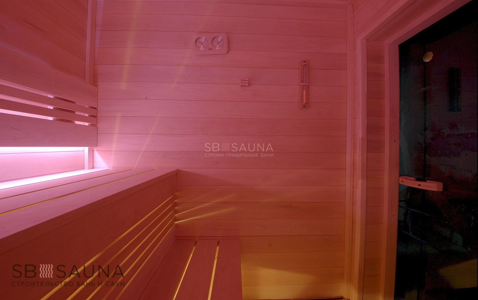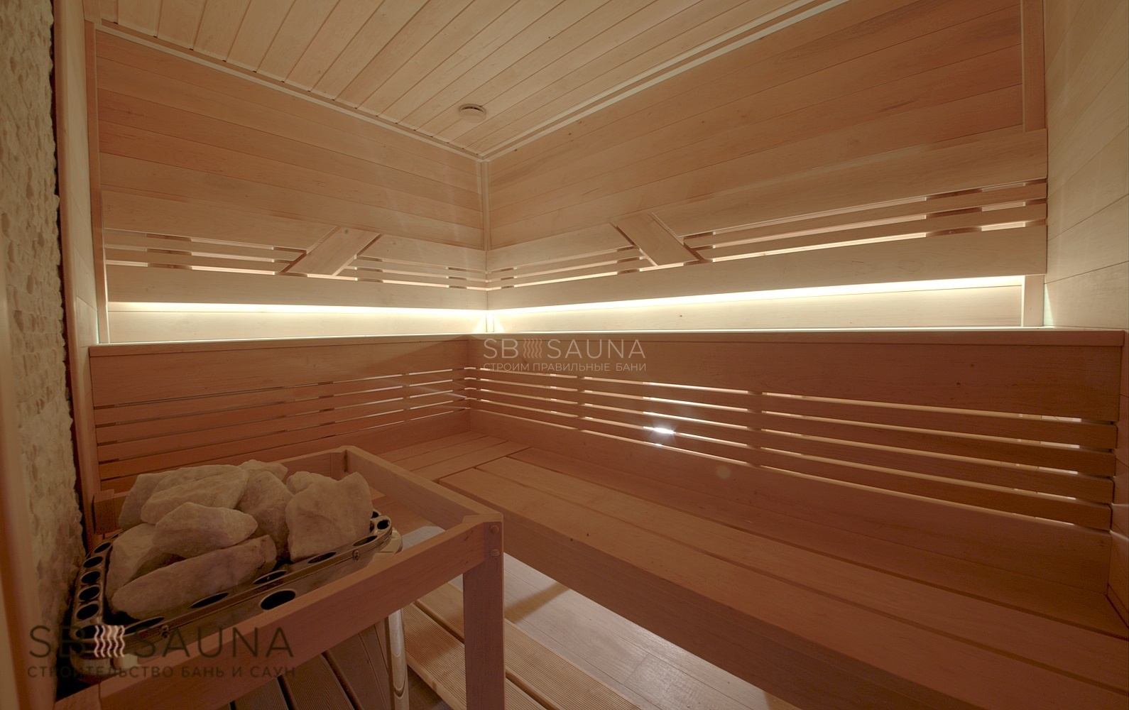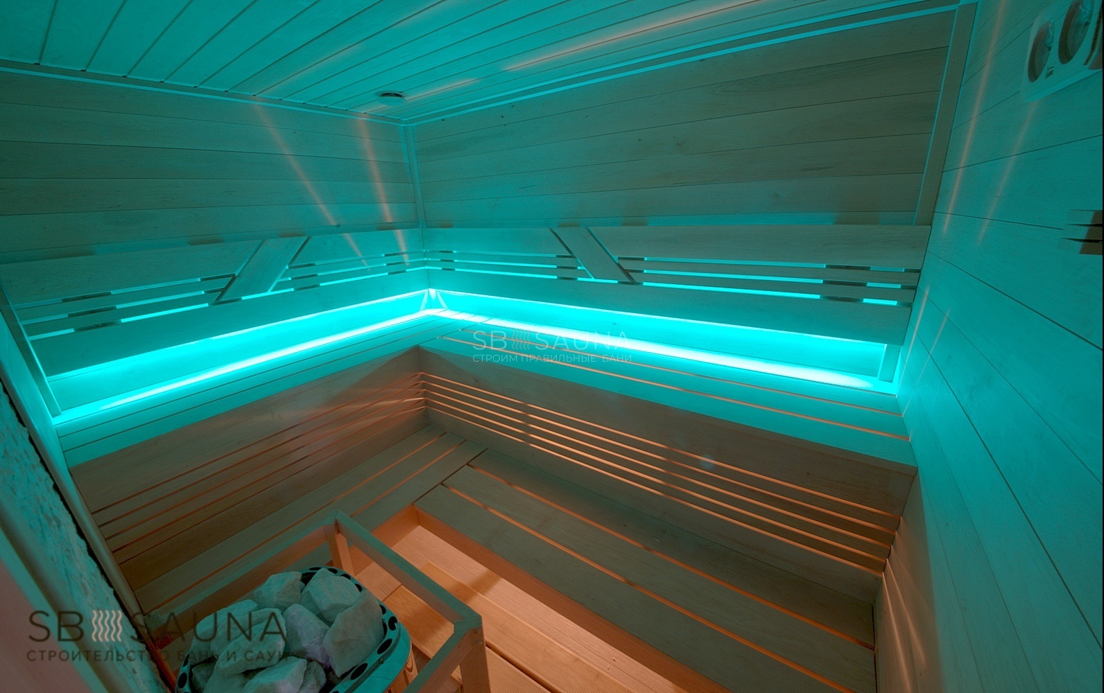 Эта сауна - яркий пример того, как современно и ярко может выглядеть классическая сауна.