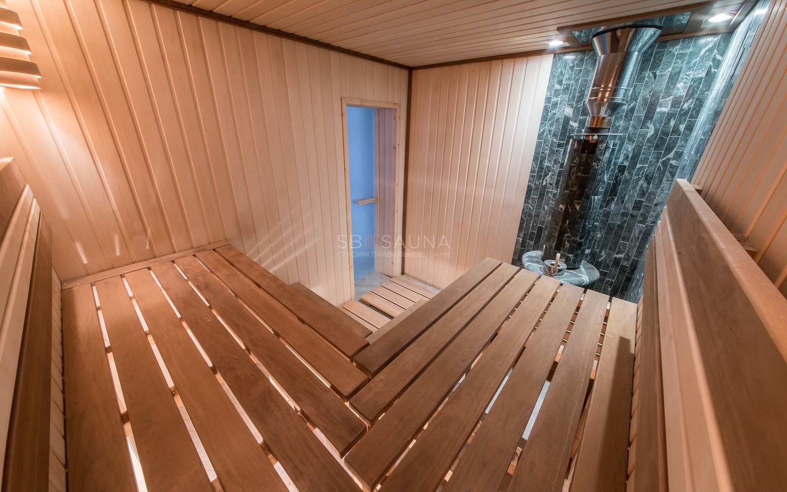 При строительстве данной парной заказчик остановился на классическом варианте. Для облицовки мы использовали современные экологичные материалы, такие как липа и термолипа.