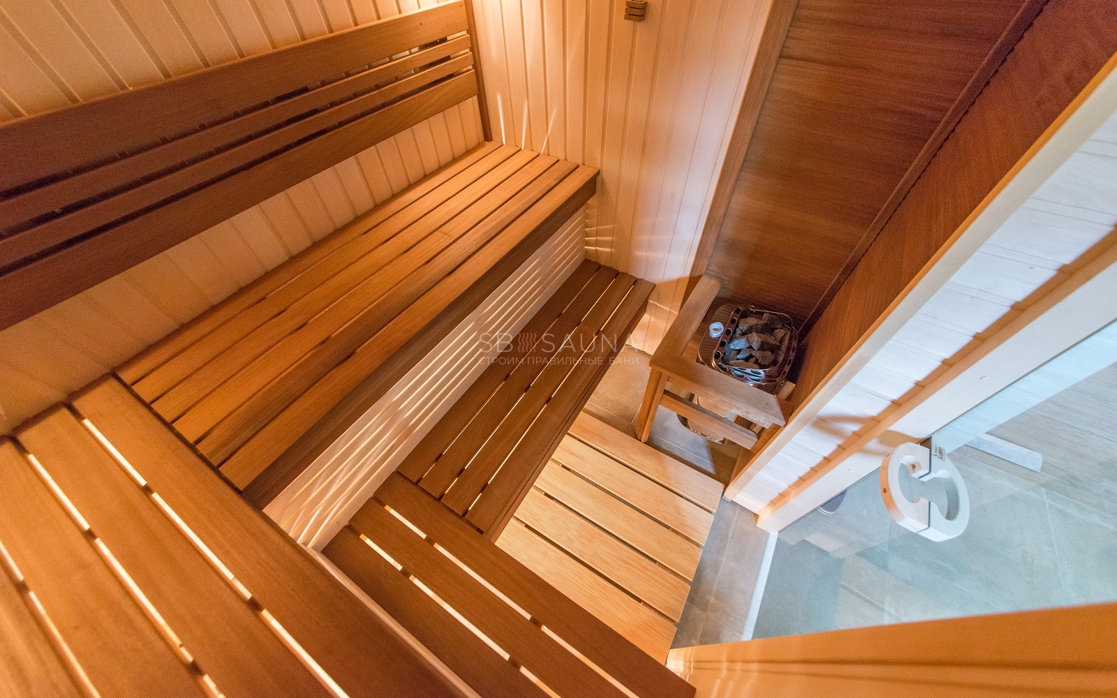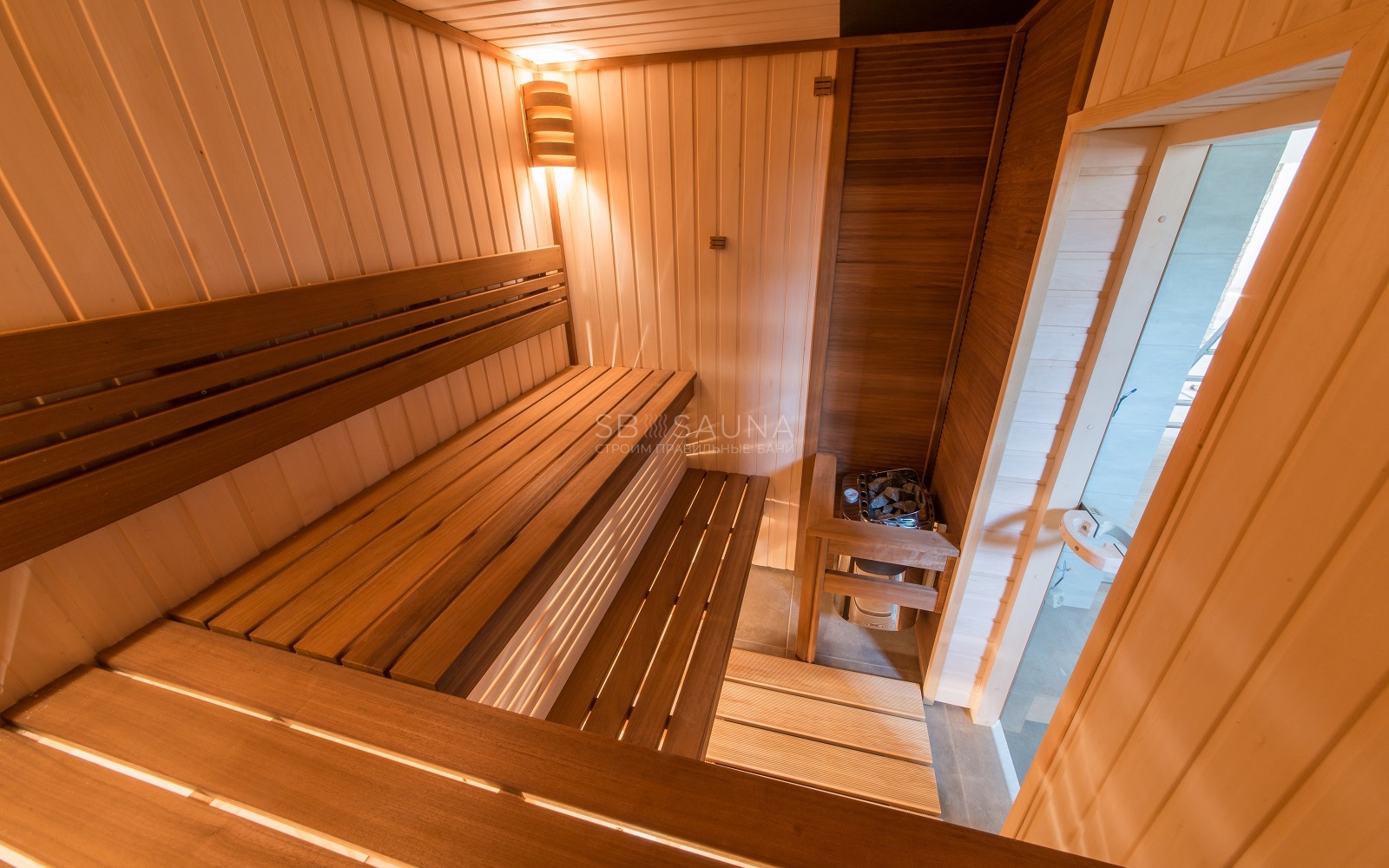 Данный проект доказывает, что реально построить небольшую и функциональную финскую сауну даже на небольшой площади. Для отделки мы остановились на экологически чистых материалах, таких как вагонка из липы и термоабаш.